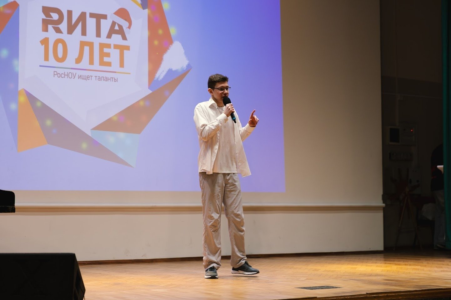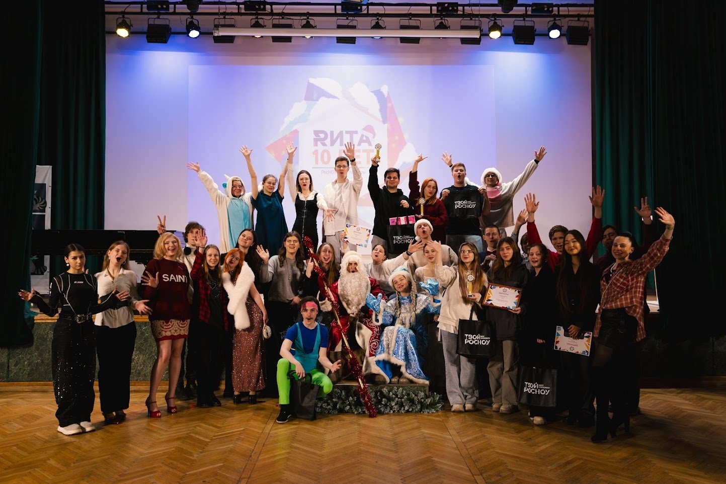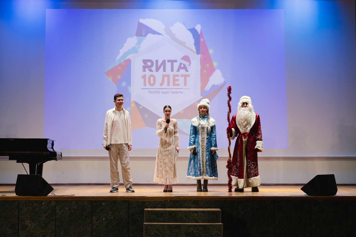 24 декабря в Малахитовом зале РосНОУ состоялся новогодний гала-концерт Х фестиваля студенческого творчества «РосНОУ ищет таланты» — «РИТА». Фестиваль, который организовали департамент по делам молодёжной политики и воспитательной работе и проектный отдел студенческого совета РосНОУ, проходил с 26 ноября по 8 декабря в несколько этапов: