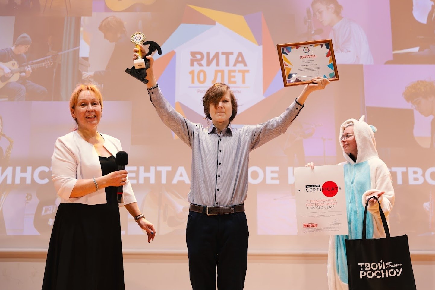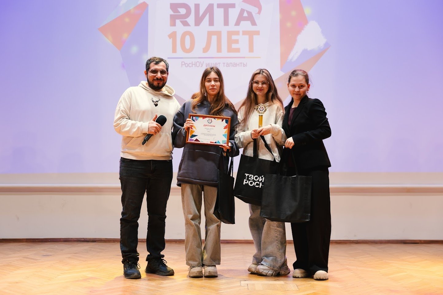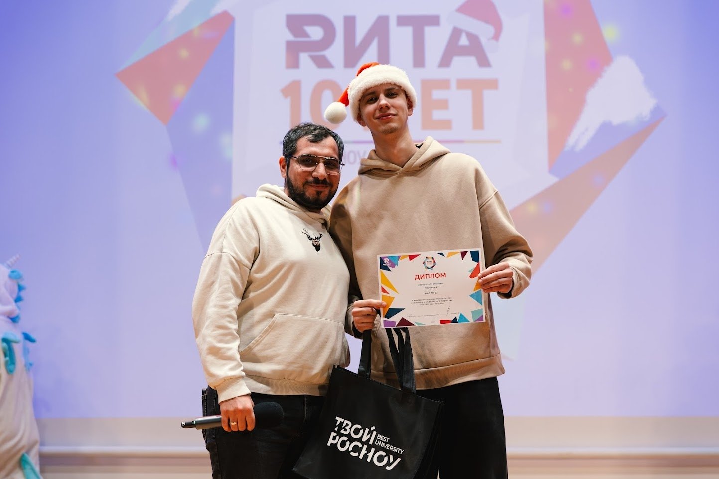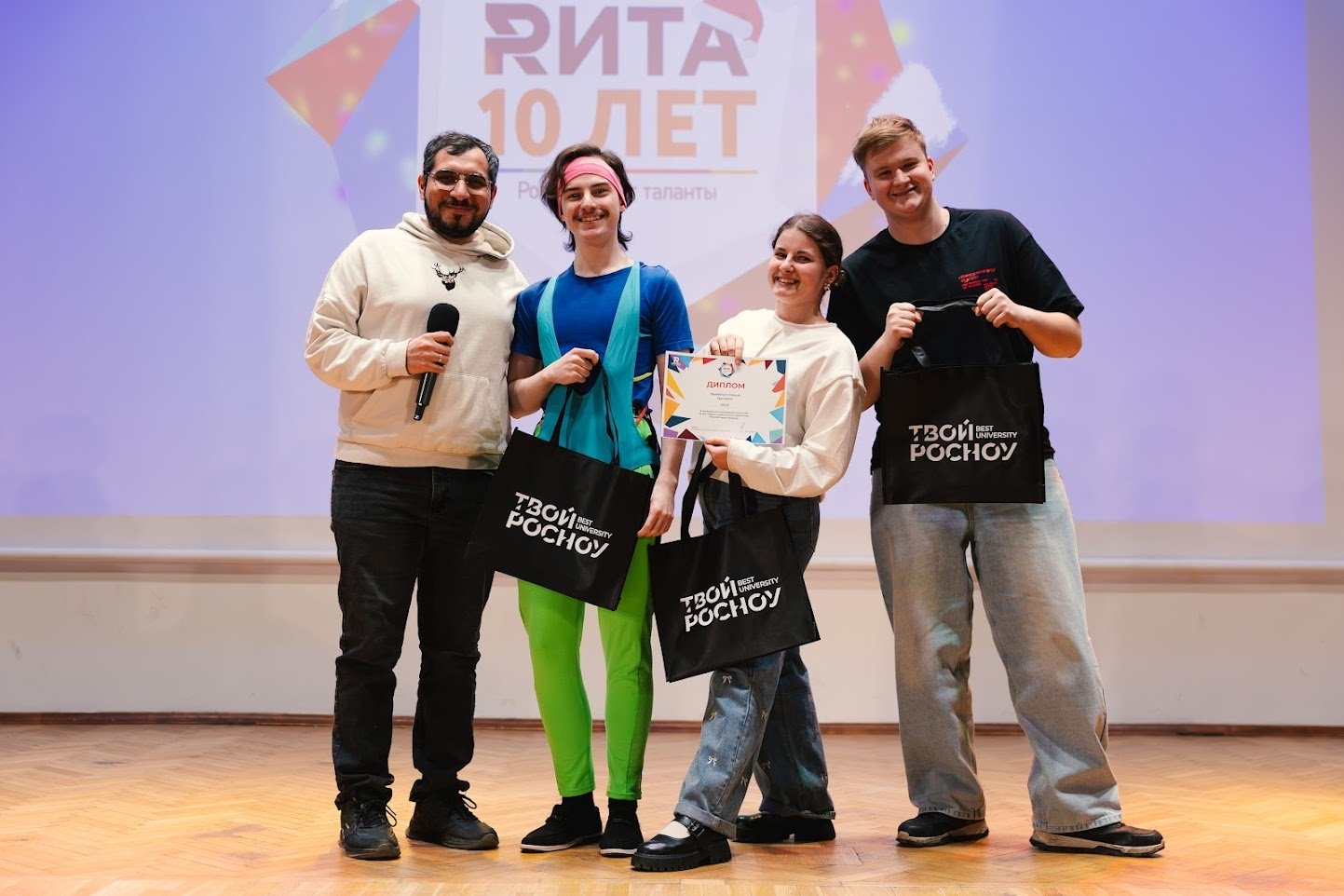 24 декабря в Малахитовом зале РосНОУ состоялся новогодний гала-концерт Х фестиваля студенческого творчества «РосНОУ ищет таланты» — «РИТА». Фестиваль, который организовали департамент по делам молодёжной политики и воспитательной работе и проектный отдел студенческого совета РосНОУ, проходил с 26 ноября по 8 декабря в несколько этапов: