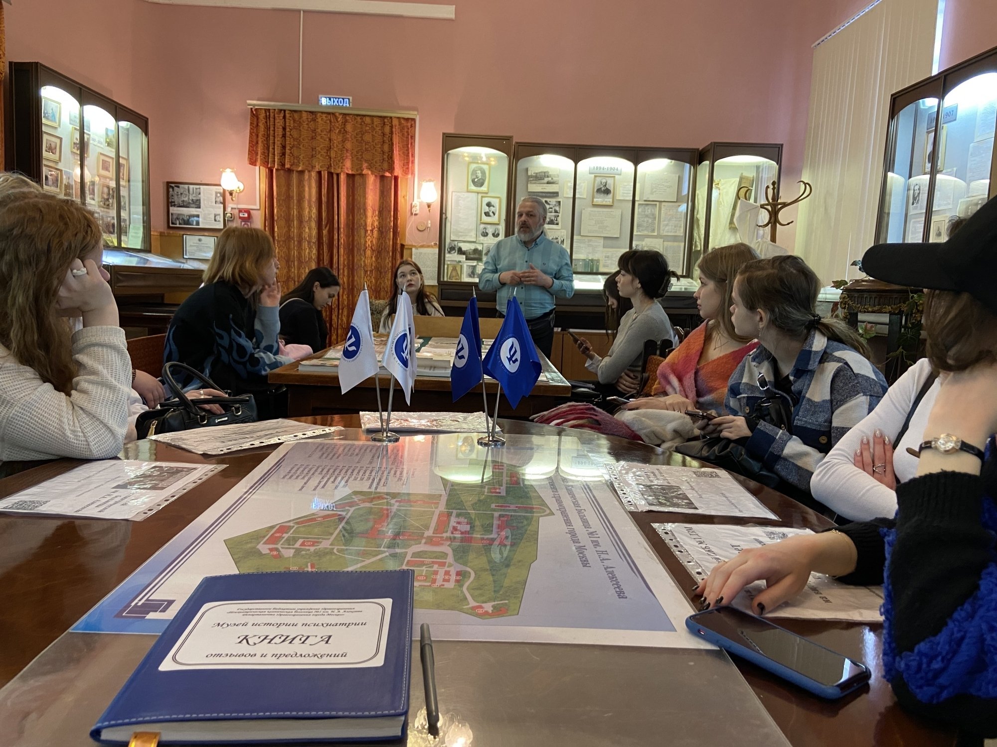 В рамках предмета специальной психологии группы 217к, 117к, 117кс побывали на экскурсии в музее Психиатрической клинической больницы № 1 им. Алексеева. Студенты познакомились с материалами по истории психиатрии XVII–XXI веков, узнали об историческом прошлом больницы из медицинских и хозяйственных отчётов, фотографий. Послушали об историях болезни начала XX века, знаковых научных трудах и учебниках психиатрии. Обучающиеся Колледжа РосНОУ получили представление о том, как работала больница с первых дней основания до настоящего момента, увидели работы пациентов, выполненные в рамках трудовой терапии. В отдельном зале можно было подробнее узнать о создателе больницы, городском голове Н. А. Алексееве.