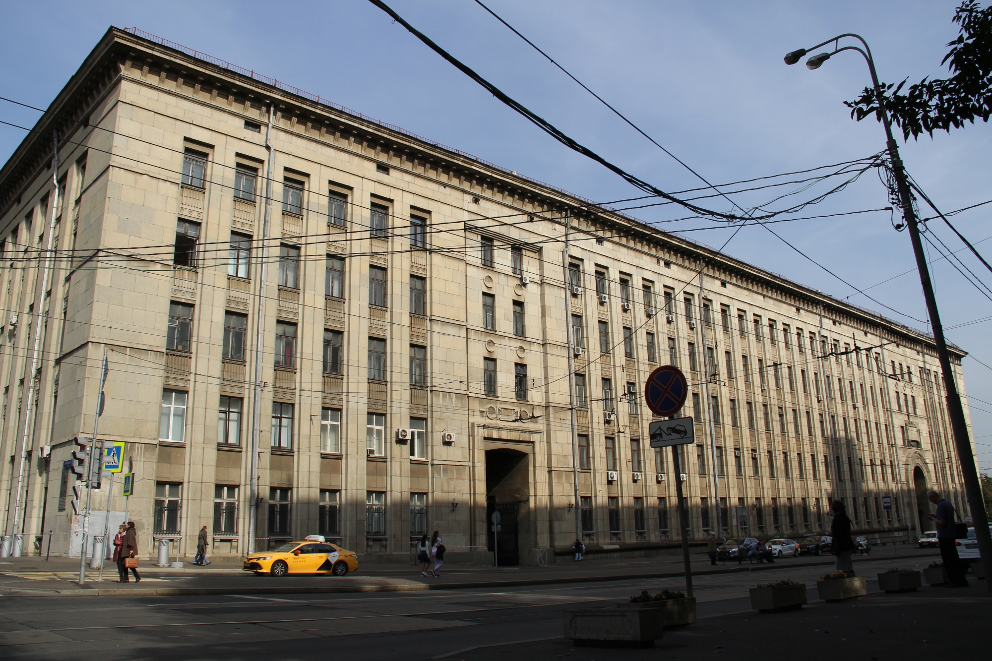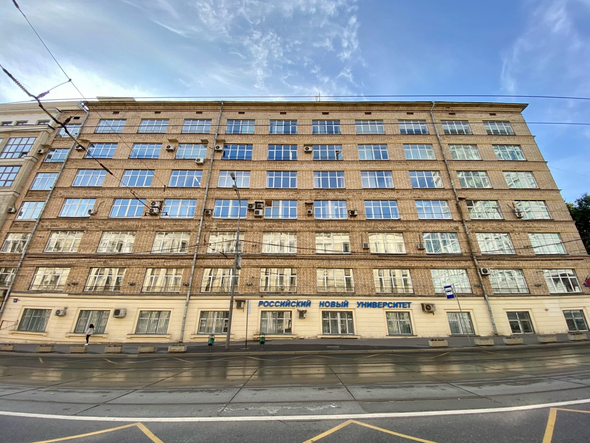 Наконец мы подошли к главному корпусу Российского нового университета. Он расположен в здании 1959 года, примыкающем к корпусу, построенному в 1930-е годы для конструкторского отдела сектора опытного самолётостроения (КОСОС) ЦАГИ. В 1939 году сюда переехало ЦКБ-29, так называемая туполевская шарага, где трудились заключённые: авиаконструкторы и инженеры под руководством Александра Николаевича Туполева и Сергея Павловича Королёва. В КБ Туполева были созданы самолёты-бомбардировщики Великой Отечественной войны Пе-2 и Ту-2. Всего на фронт было отправлено 1216 самолётов. В 1941 году, после первых бомбардировок Москвы, ЦКБ-29 эвакуировали в Омск, а в 1944 вернули в столицу. Российский новый университет переехал в это здание в 1999 году.