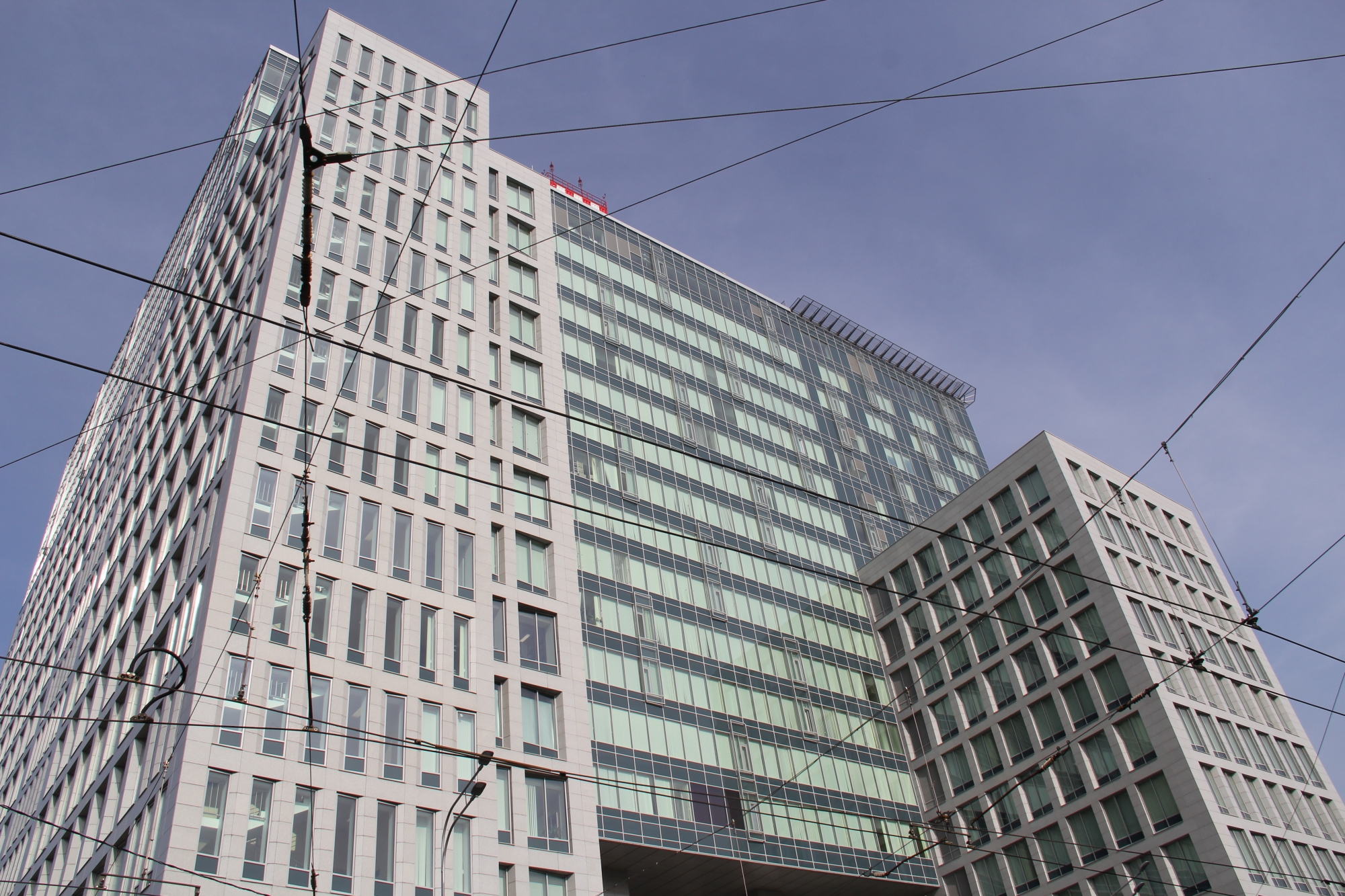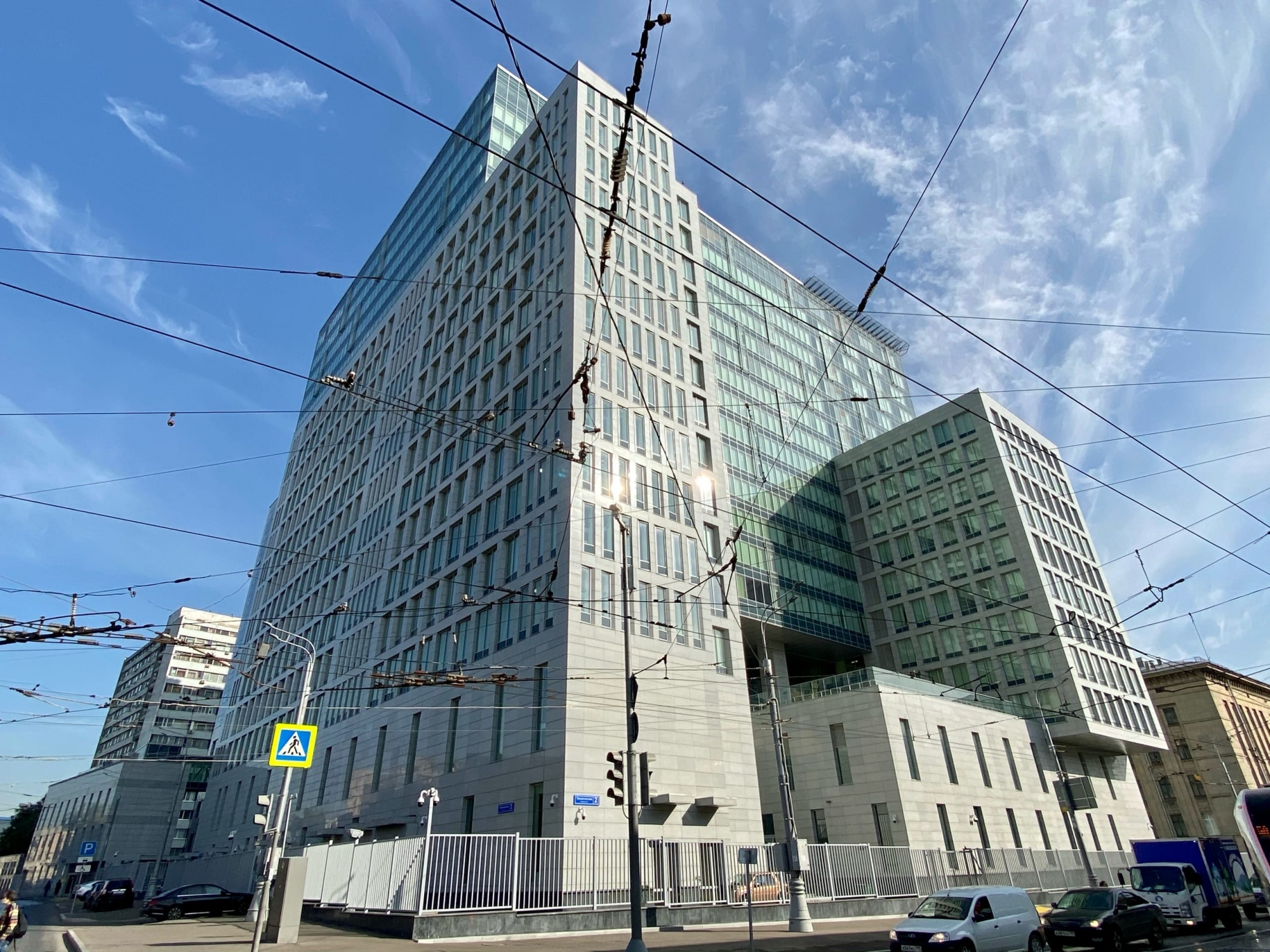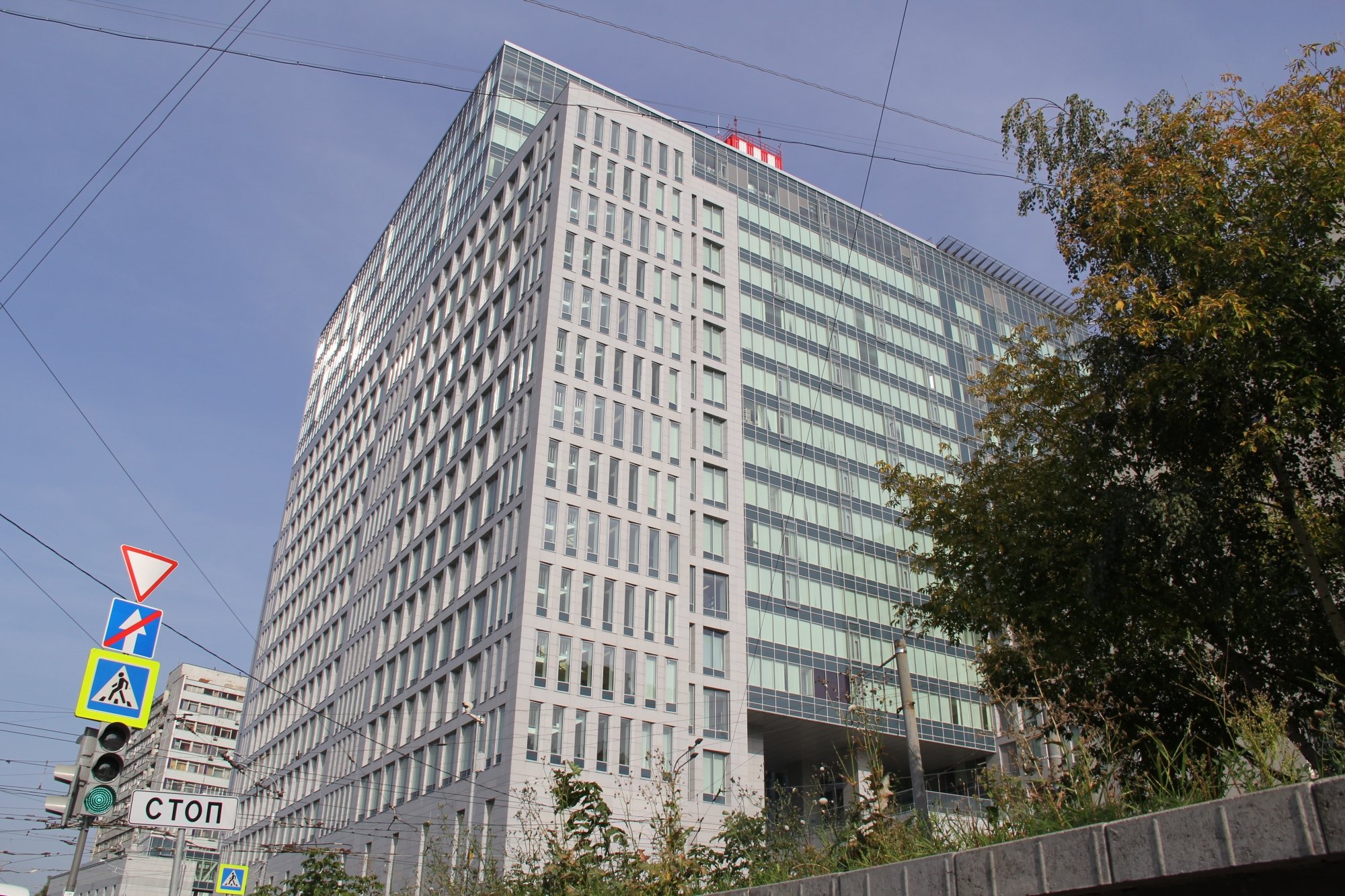 Напротив диспансера — новое здание Следственного комитета России. Это 18-этажное строение с культурным центром, спорткомплексом и вертолётной площадкой. Общая площадь объекта — 60 тысяч квадратных метров. Он строился с 2015 по 2019 годы.
