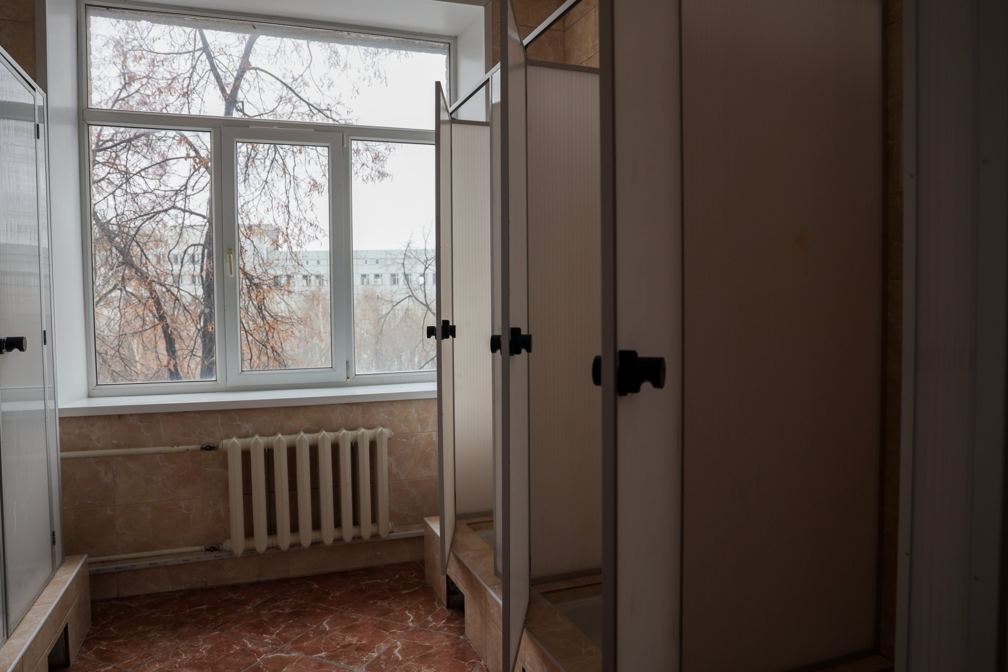 В здании два крыла. Все этажи правого крыла оборудованы двумя кухнями, тремя душевыми комнатами, четырьмя холлами, а также комнатой для стирки и сушки. В левом крыле здания одна кухня на этаж и персональные душевые в каждом блоке.